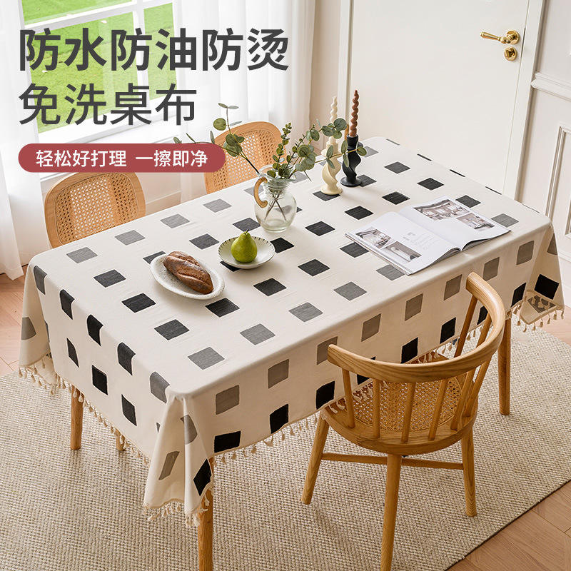 ผ้าปูโต๊ะอันรัน รูปทรงสี่เหลี่ยมผืนผ้า ลายเรขาคณิต ผ้าฝ้ายผสมลินิน กันน้ำ กันน้ำมัน สำหรับใช้ในบ้าน