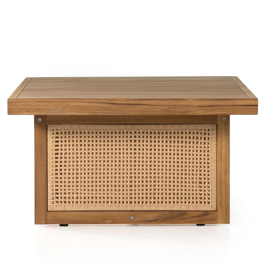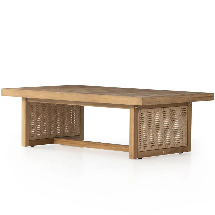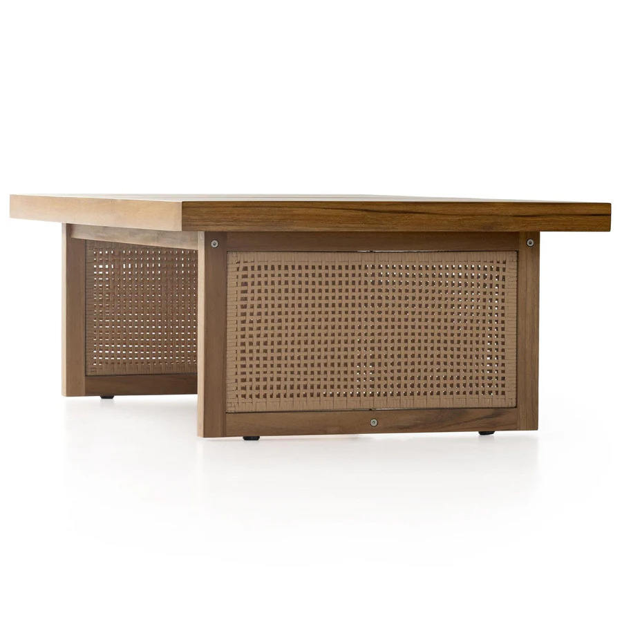 โต๊ะกาแฟอันเซล โมเดิร์น ทำจากไม้สักแท้ พร้อมหวายปรับระดับความสูงได้ สีธรรมชาติ สำหรับใช้ภายใน/ภายนอกอาคาร