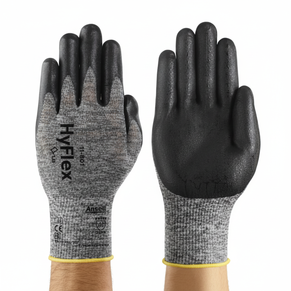 Ansell hyflex 11-801ถุงมือความปลอดภัยอุตสาหกรรมเจาะยึดเกาะสูงป้องกันการตัดรอยขีดข่วนวัตถุประสงค์ทั่วไป