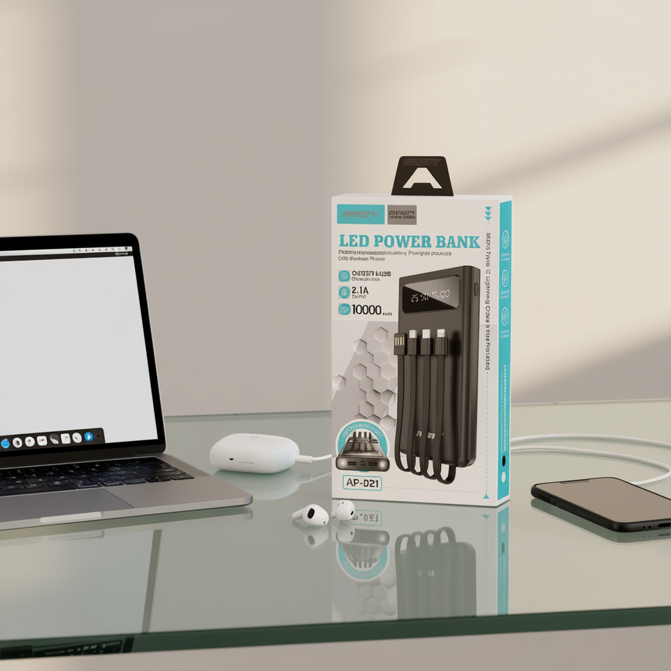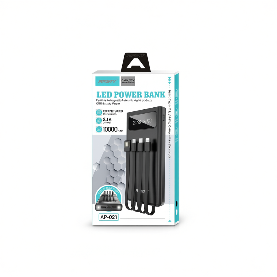 Ansty แบตเตอรี่สำรอง LED 10000 mAh 2.1พอร์ตชาร์จ USB 6พอร์ตสีขาว (AP-021)