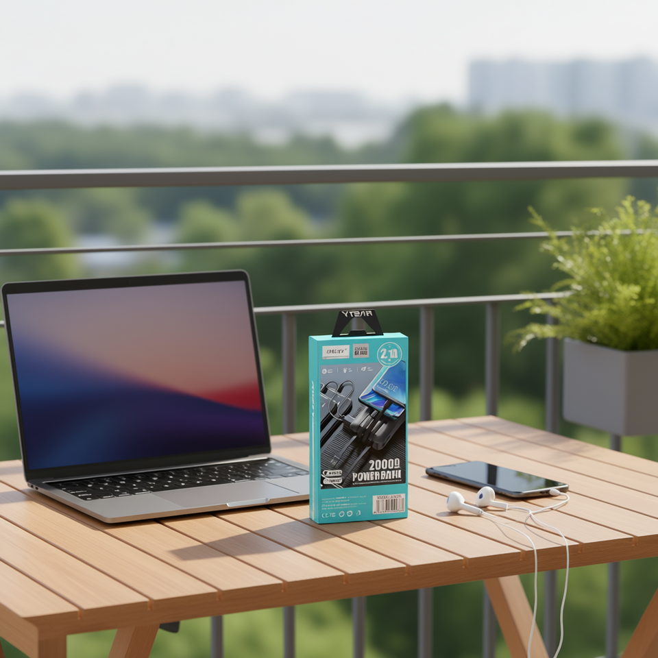 Ansty Ay-105แบตเตอรี่สำรอง2.1A 20000mAh พร้อมสาย USB Micro Type C สำหรับ iPhone อินเตอร์เฟซสีดำ