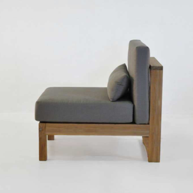เก้าอี้ไม่มีที่วางแขนเดี่ยวของ Antasena ทำจากไม้สักธรรมชาติที่นั่งโซฟาพร้อมเบาะสำหรับห้องนั่งเล่นหรือกลางแจ้ง