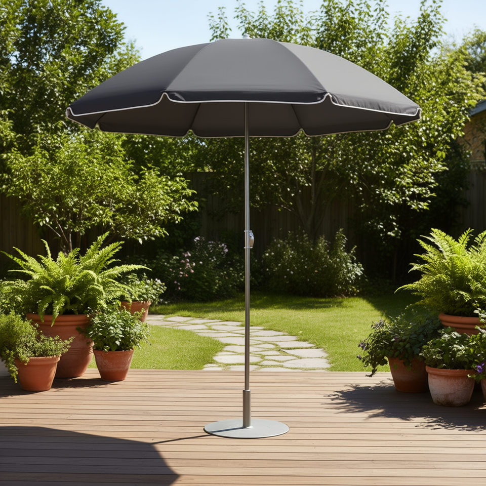 ร่มสนามสีแอนทราไซต์ 70.9 นิ้ว พร้อมเสาเหล็กสแตนเลส สำหรับใช้กลางแจ้ง ป้องกันแสงแดด