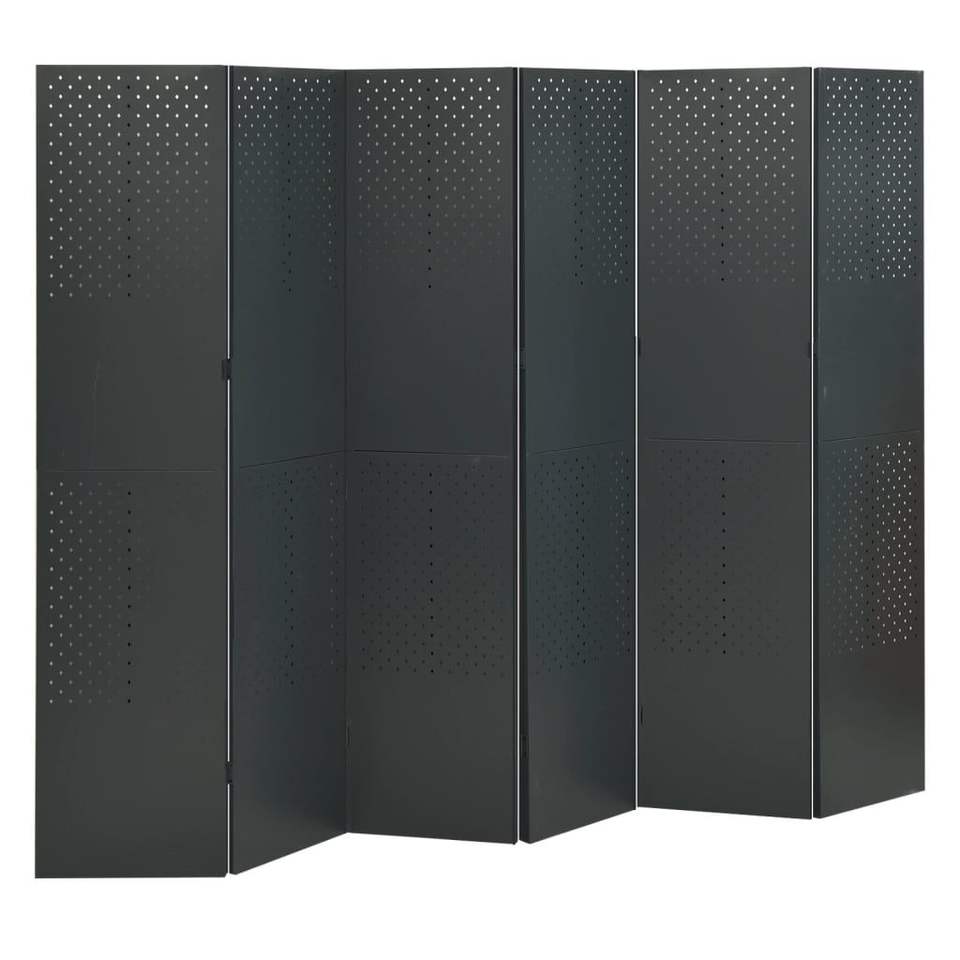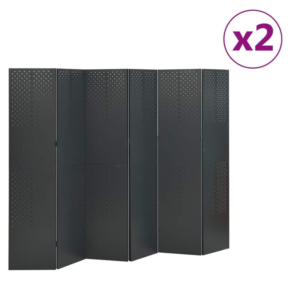 ฉากกั้นห้องเหล็ก 6 แผง สีแอนทราไซต์ ขนาด 94.5"x70.9" ชุด 2 ชิ้น