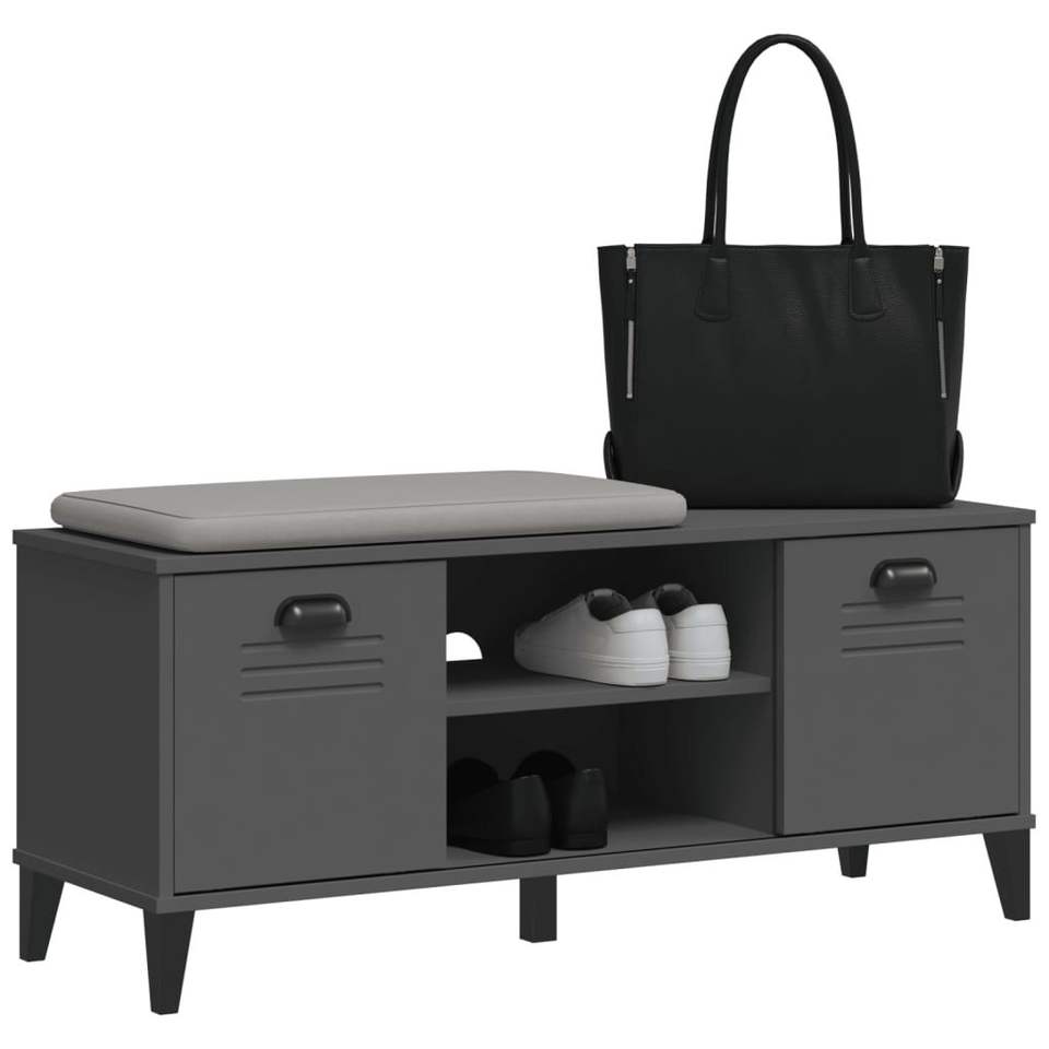 ม้านั่งเก็บรองเท้าสีเทาแอนทราไซต์ขนาดกลาง ชั้นวางรองเท้าไม้สังเคราะห์