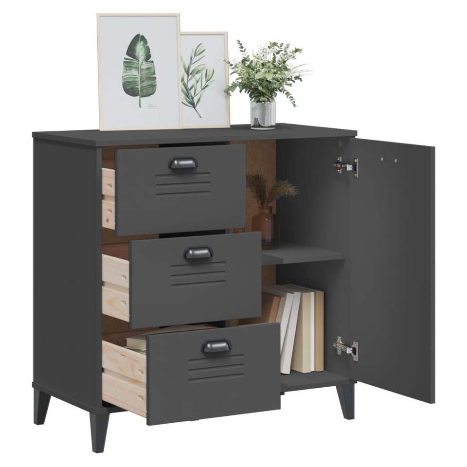 ตู้เก็บของไม้เอ็นจิเนียร์สีแอนทราไซต์เกรย์สำหรับห้องนั่งเล่น