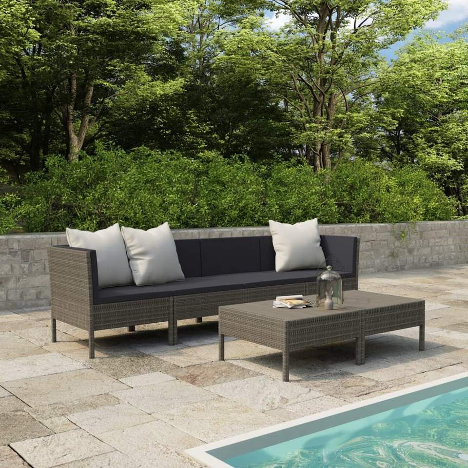 ชุดเฟอร์นิเจอร์สวนสีเทาแอนทราไซต์ 4 ที่นั่ง วัสดุหวาย สำหรับกลางแจ้ง ทันสมัย ทนทานต่อสภาพอากาศ พร้อมโต๊ะ