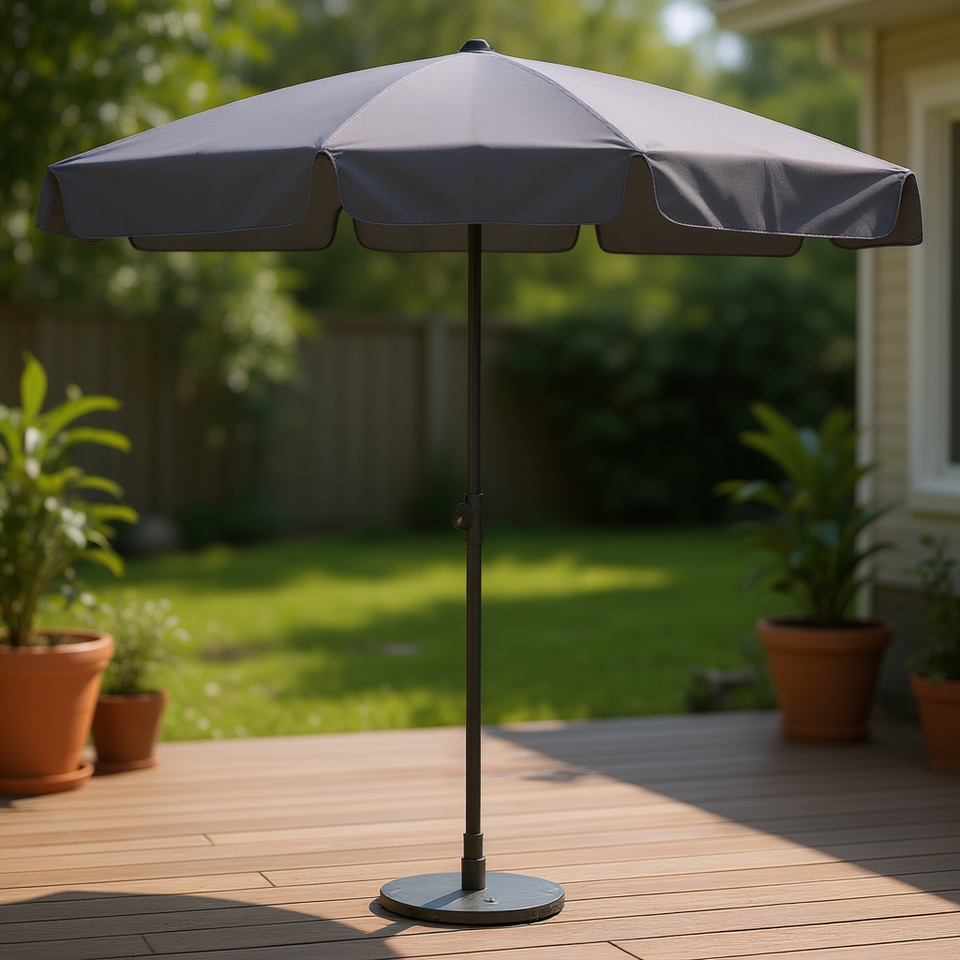 Anthracite Patio Umbrella 2.7 M Stainless Steel Pole Manual Tilt Outdoor Sun Shade Contemporary Design With Base