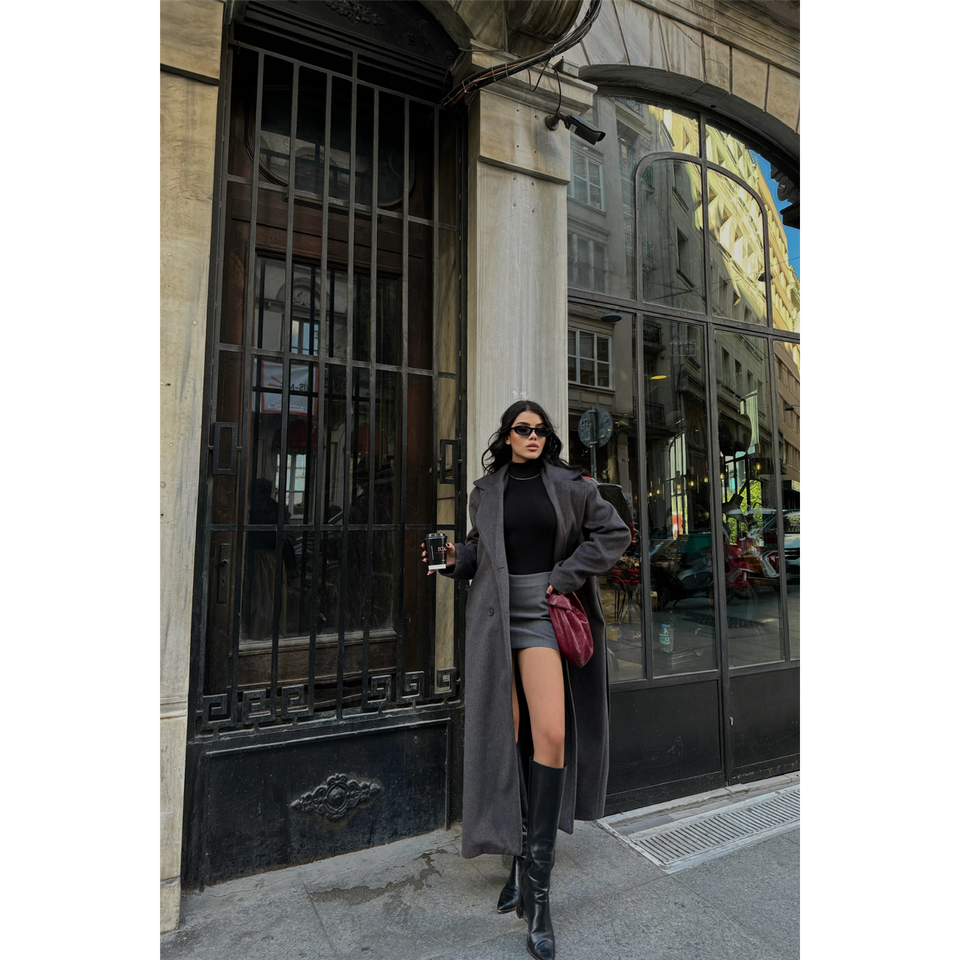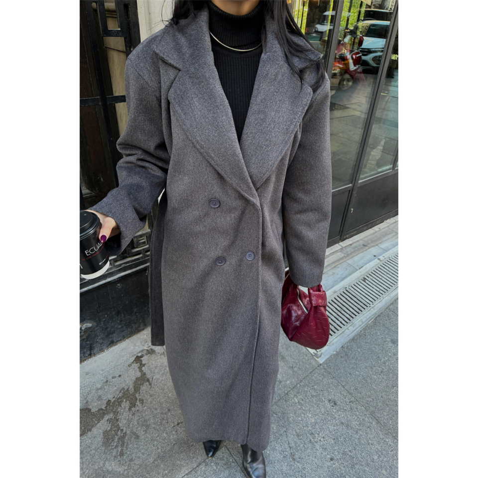 เสื้อโค้ทแคชเมียร์วินเทจสีแอนทราไซต์ ทรงแม็กซี่ ติดกระดุมแถวเดียว ถอดออกได้ ขนฟู ระบายอากาศ ลายทาง ไซส์ XL สำหรับฤดูหนาว สไตล์วินเทจ