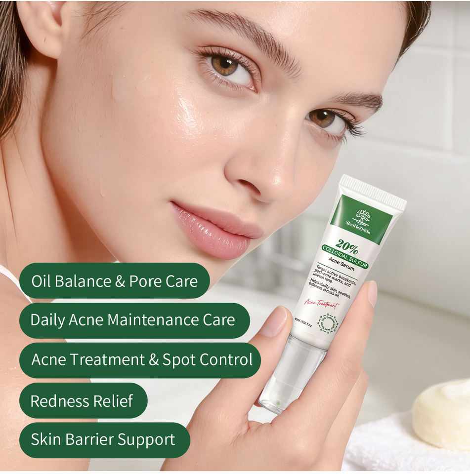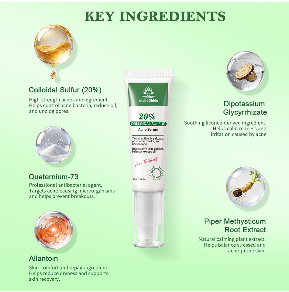 เซรั่มลดสิวผสมโคลลอยด์ซัลเฟอร์ 20% สำหรับสิวและรอยแดง ควบคุมความมัน ลดรอยดำ สำหรับผิวเป็นสิวง่าย รับผลิตแบบ OEM/ODM