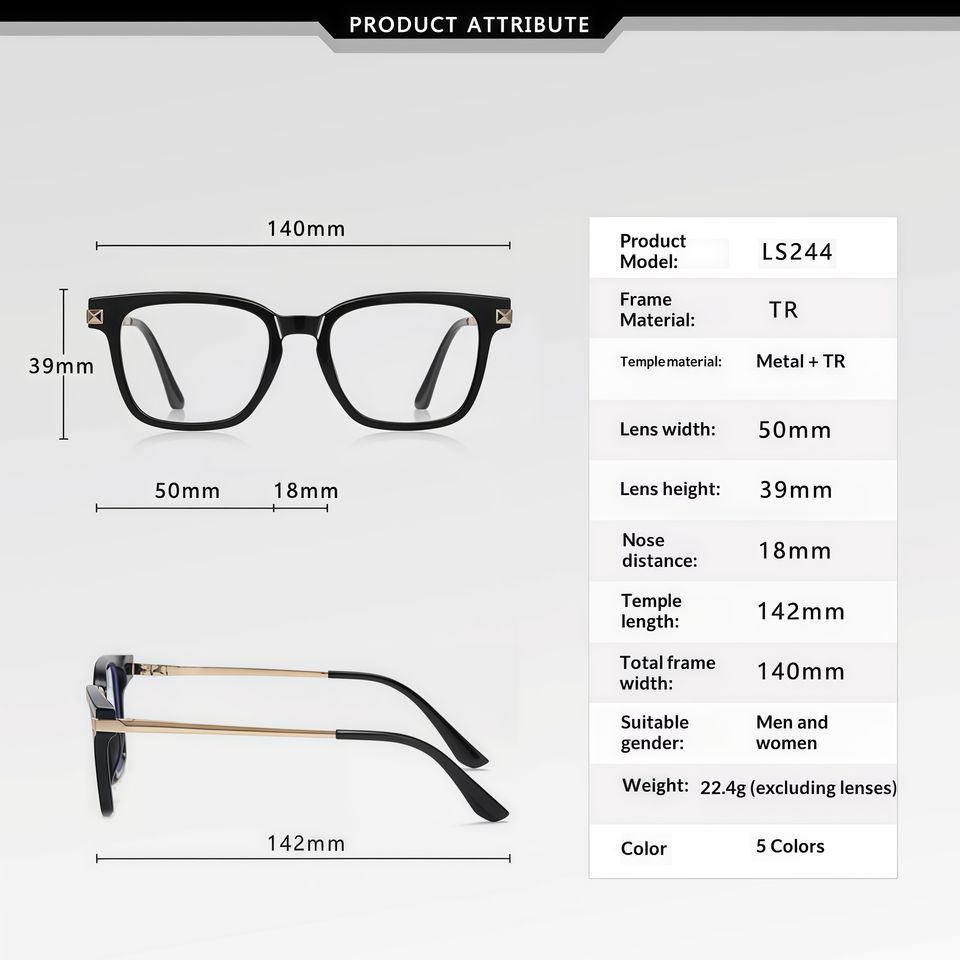 แว่นกรองแสงสีฟ้า รุ่น Unisex สีดำ คุณภาพสูง รับผลิตตามสั่ง พร้อมโลโก้ กรอบ TR90 ทรงเหลี่ยม น้ำหนักเบา รับผลิตแบบ OEM จัดส่งรวดเร็ว