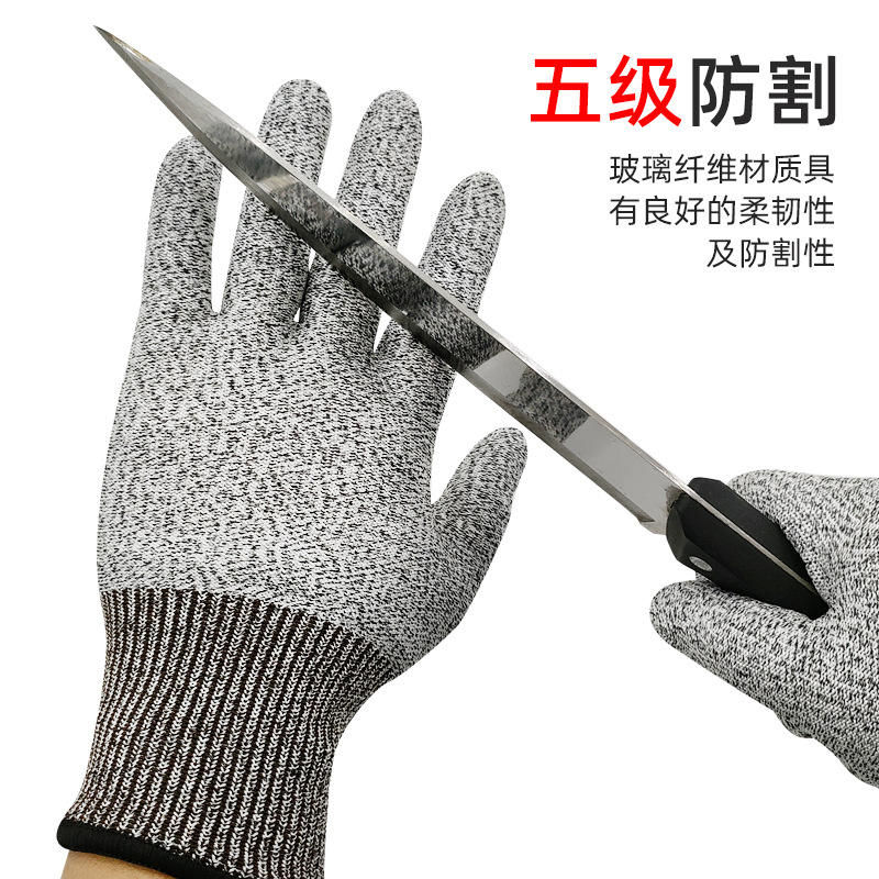 ถุงมือกันบาดระดับ 5 ทำจากไฟเบอร์กลาสแบบไม่เคลือบ สำหรับงานครัว ทำสวน ป้องกันการเสียดสี ทนต่อการขัดถู