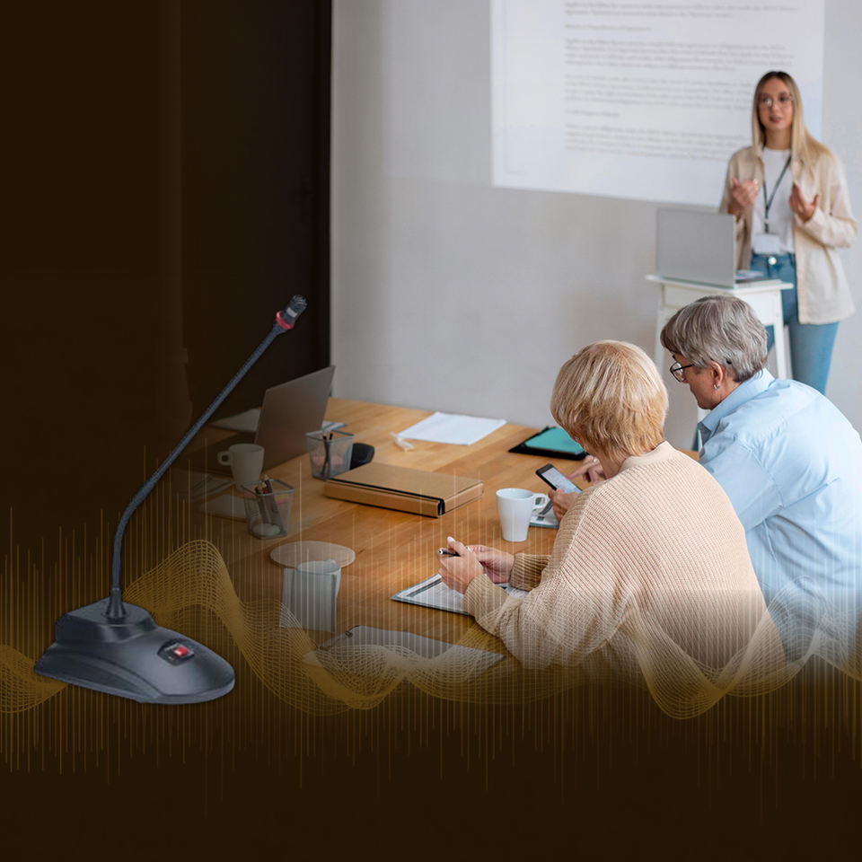 ไมโครโฟนตั้งโต๊ะเทคโนโลยีป้องกันการป้อนกลับ