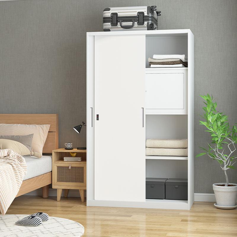 ตู้เสื้อผ้าเหล็กเคลือบกันสนิมแบบเลื่อนพร้อมพื้นที่เก็บของขนาดใหญ่ ตู้เก็บเสื้อผ้าเหล็กจากโรงงานโดยตรง พร้อมราวแขวนและกระจก