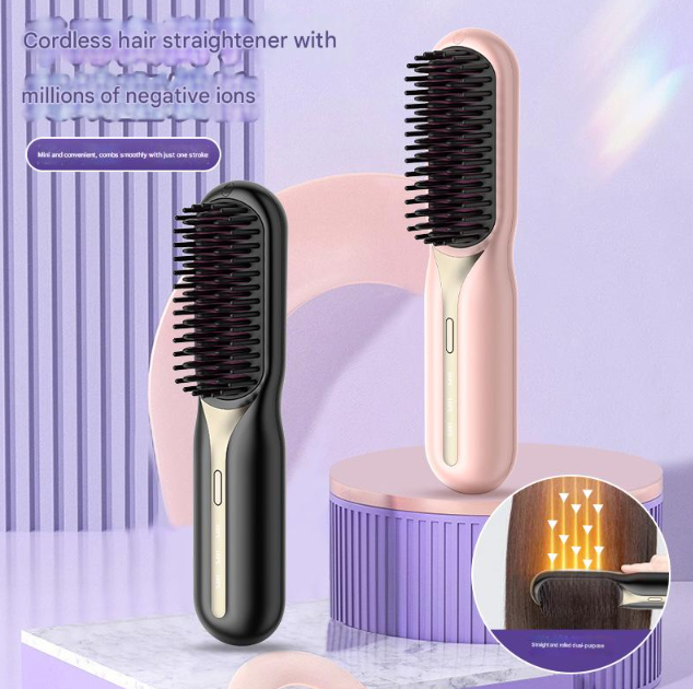 แปรงยืดผมไร้สายป้องกันความร้อน น้ำหนักเบา พกพาสะดวก แปรงยืดผมแบบใช้ไฟฟ้า ชาร์จผ่าน USB ได้
