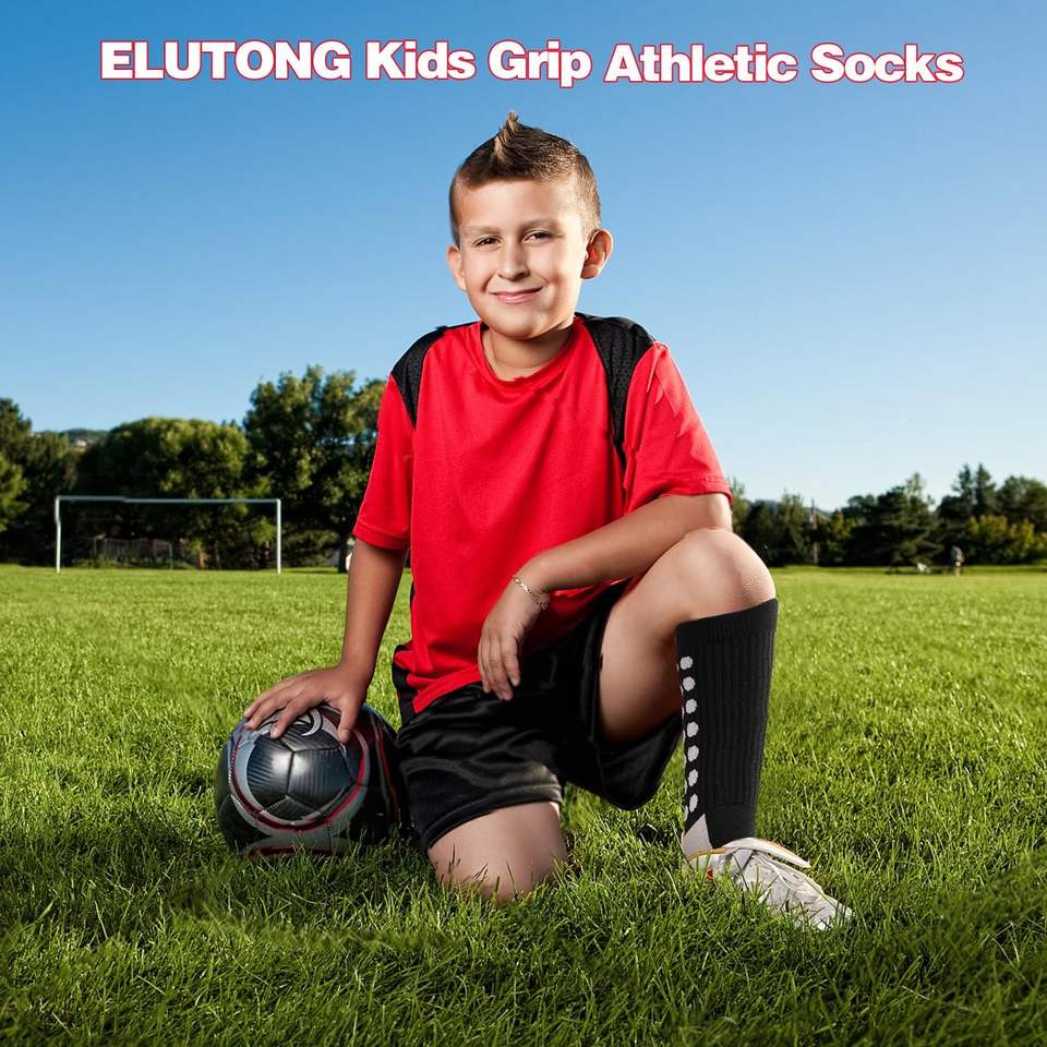 ถุงเท้ากันลื่นสำหรับเด็ก วัยรุ่น เด็กชายและเด็กหญิง สำหรับฟุตบอลและกีฬาอื่นๆ ดีไซน์กันลื่น สำหรับเด็กอายุ 4-16 ปี (รุ่นอัพเกรดใหม่)