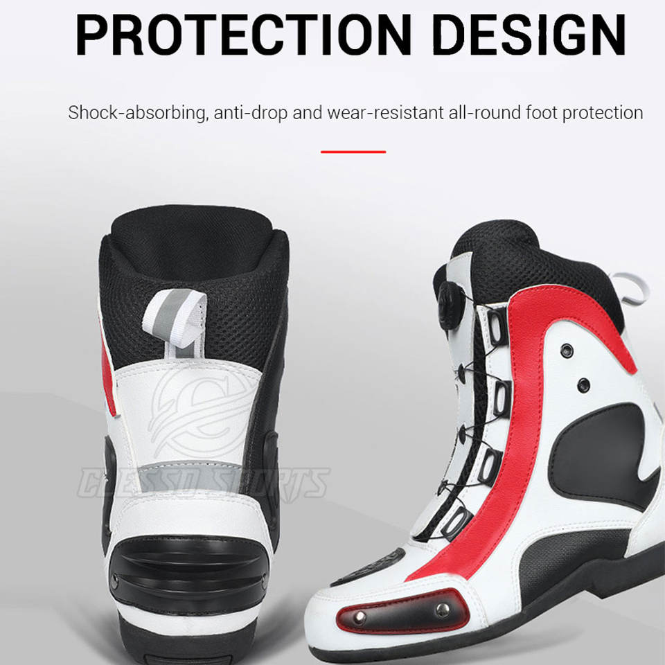 รองเท้าบูทมอเตอร์ไซค์กันลื่นสำหรับผู้ชาย รองเท้าหนังขี่มอเตอร์ไซค์ รองเท้าขี่มอเตอร์ไซค์หนังกันลื่นกันน้ำสำหรับผู้ชาย