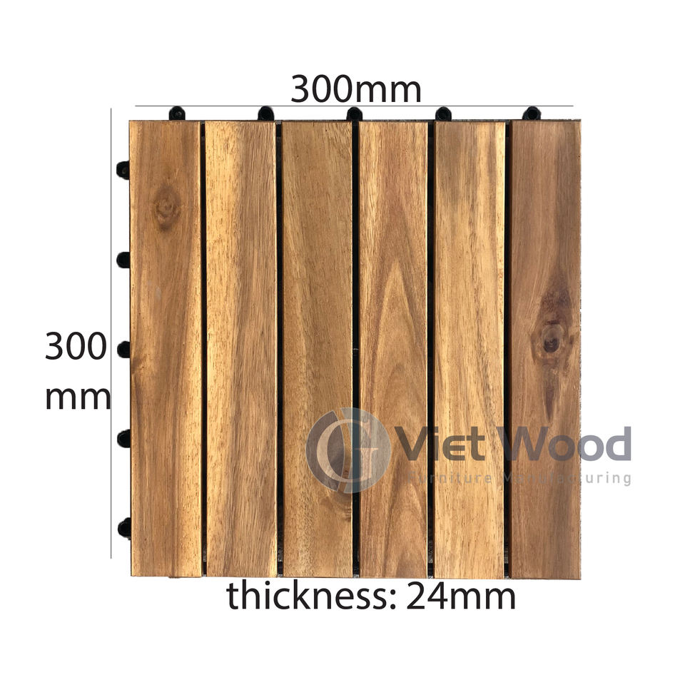 แผ่นไม้อะคาเซียร่วมสมัยกันน้ำกันลื่นสำหรับปูพื้นกลางแจ้งที่เชื่อมต่อกัน