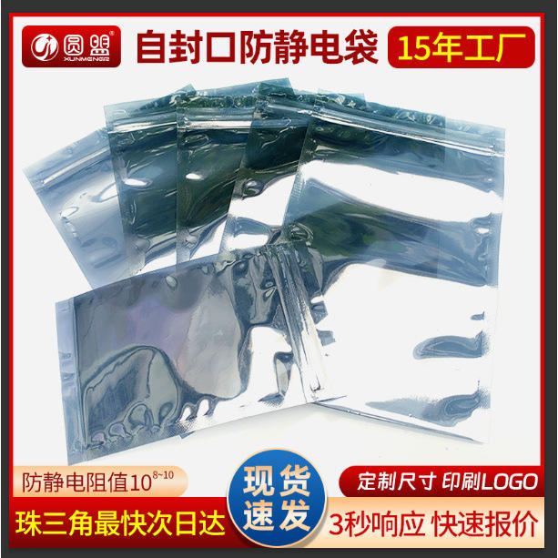 ถุงป้องกันไฟฟ้าสถิตแบบปิดผนึกเองได้สำหรับชิ้นส่วน แถบไฟ LED เมนบอร์ด ฮาร์ดไดรฟ์ พร้อมซิปปิด วัสดุ PETCPP สีขาว