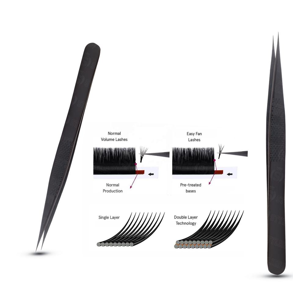 แหนบต่อขนตาป้องกันไฟฟ้าสถิต สำหรับต่อขนตาแบบวอลุ่ม แหนบต่อขนตาสำหรับมืออาชีพ รับผลิตแบบ OEM แบรนด์ส่วนตัว ขายส่ง