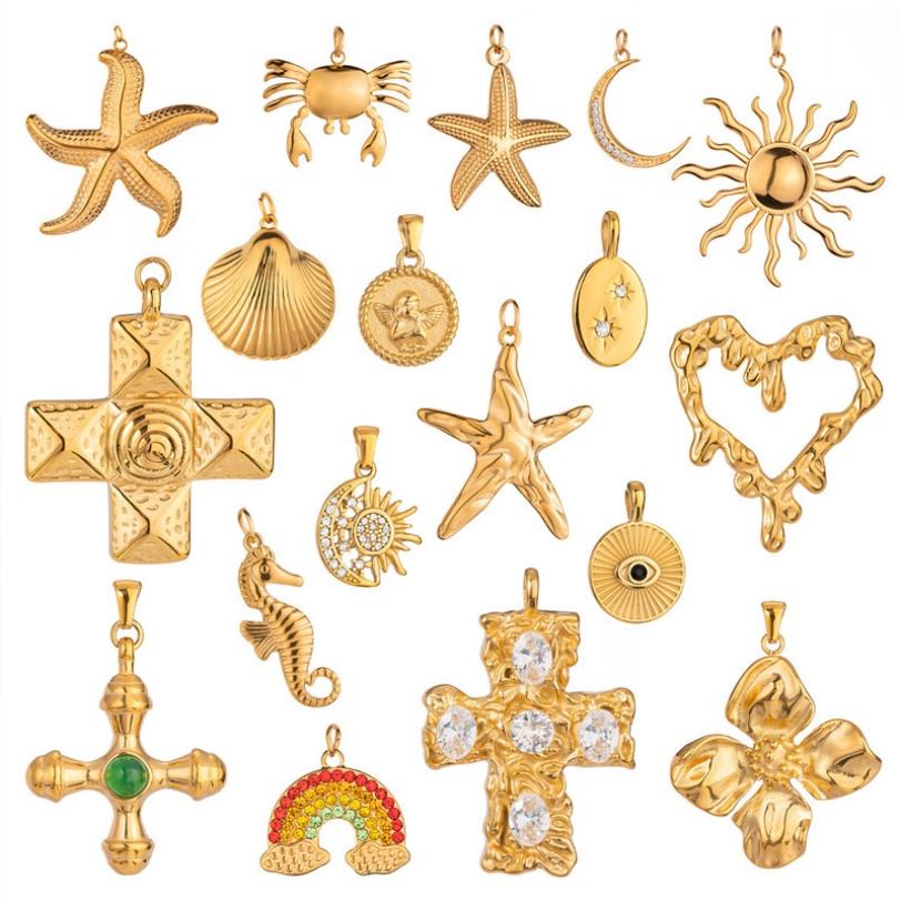 จี้กันน้ำเคลือบทอง 18k PVD สำหรับงาน DIY ทำเครื่องประดับ ขายส่ง จี้รูปทะเลทำจากสแตนเลส