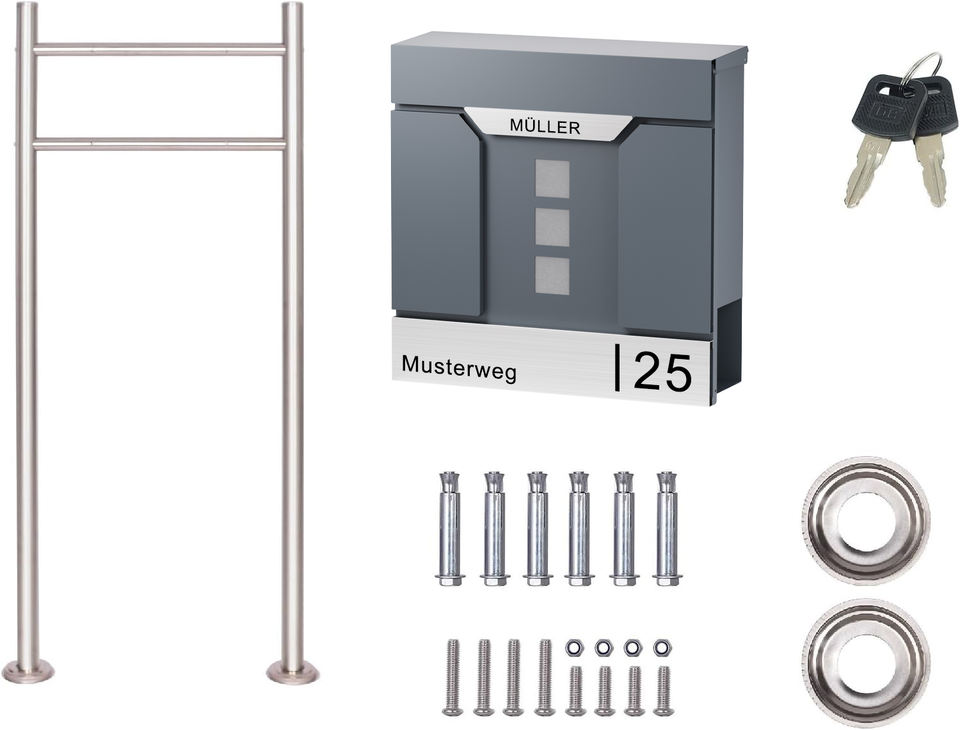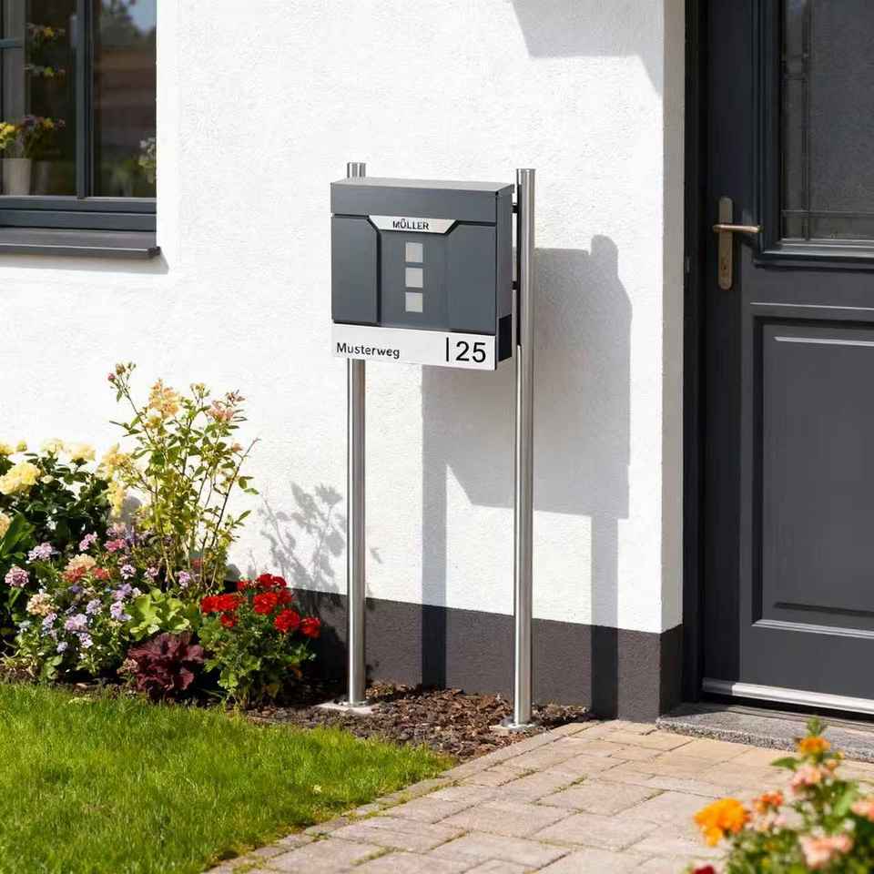 ตู้ไปรษณีย์ติดผนังกันขโมย ทนทาน พร้อมป้ายชื่อสแตนเลสและป้ายเลขที่บ้าน ตู้รับจดหมายสำหรับอพาร์ทเมนท์