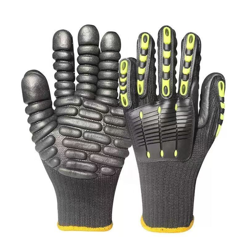 ถุงมือนิรภัยป้องกันการสั่นสะเทือนสำหรับงานก่อสร้างพร้อมแผ่นยางโฟมที่ฝ่ามือสำหรับซ่อมรถยนต์และบำรุงรักษารถยนต์