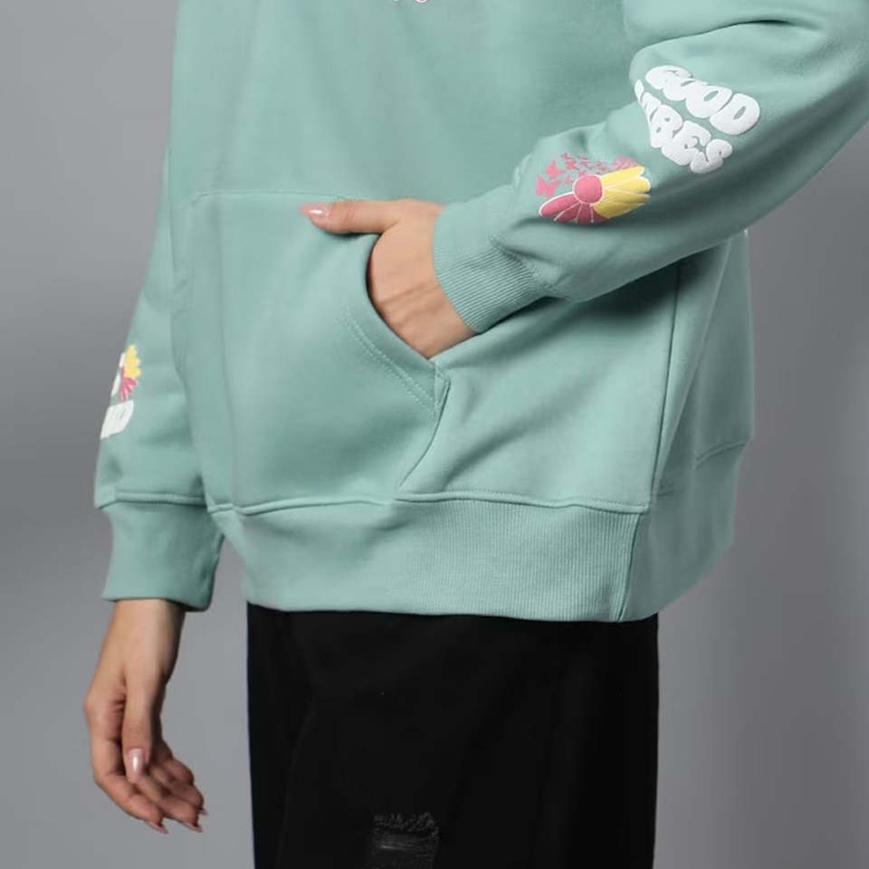 เสื้อมีฮู้ดโอเวอร์ไซส์ระบายอากาศไม่ยับสำหรับผู้หญิงพิมพ์โลโก้ด้านหน้าสไตล์ฮิปฮอปสุดเซ็กซี่สำหรับฤดูหนาว