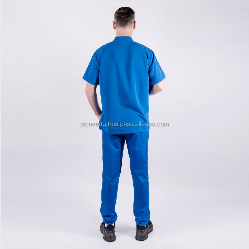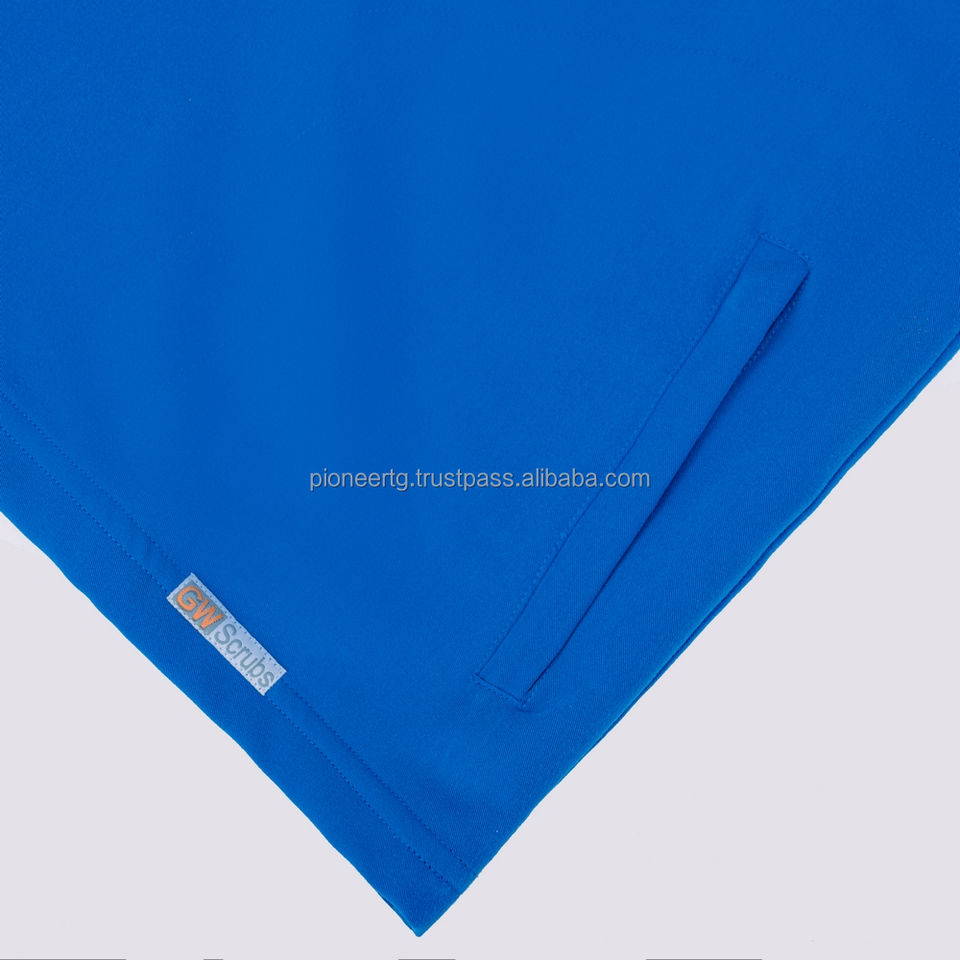 ชุดยูนิฟอร์มโรงพยาบาลแบบขาตรงป้องกันรอยยับ พิมพ์ลายโลโก้ตามสั่ง ผ้าทวิลล์ พิมพ์ซิลค์สกรีน สีพื้น สำหรับผู้หญิง