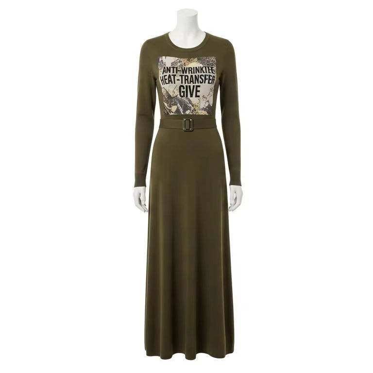 เดรสผ้าโพลีเอสเตอร์เนื้อนุ่มพิมพ์ลายผ้าถ่ายโอนความร้อนสวมใส่สบายสำหรับใส่ในชีวิตประจำวันไม่ยับย่น
