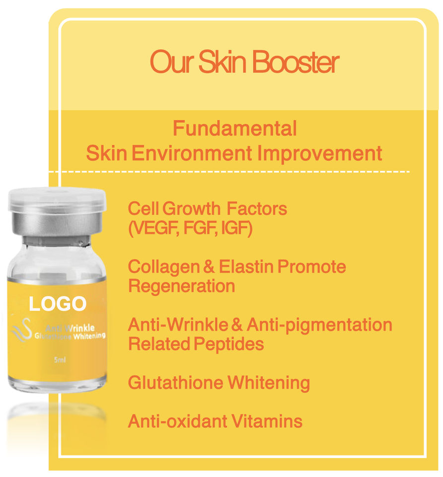 Peptide, Cell Growth Factors (EGF, FGF, IGF), Glutathione, Vitamins (C, B2, B3, B12)