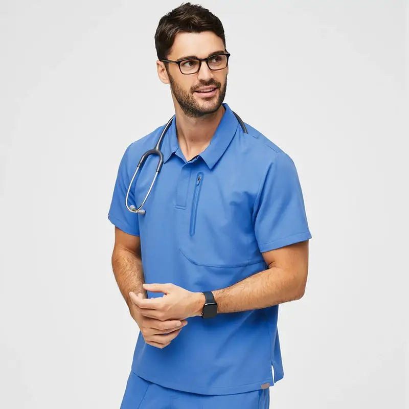 ชุดเครื่องแบบพยาบาลคอวียืดได้แขนยาวสำหรับผู้ชายและผู้หญิงชุดวิ่งสำหรับโรงพยาบาลป้องกันริ้วรอยซักได้นุ่มฤดูร้อน