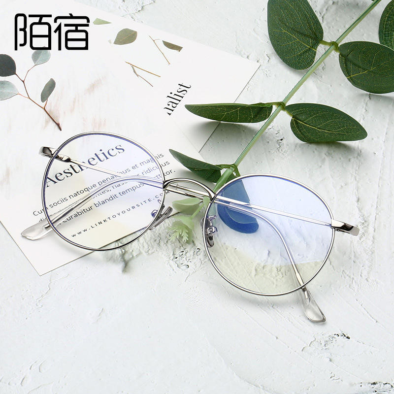 ป้องกันแสงสีฟ้า กรอบโลหะทรงกลม ทรงกลมสไตล์พังก์ แว่นตาสำหรับทุกเพศอินเทรนด์ 77507 โมชู