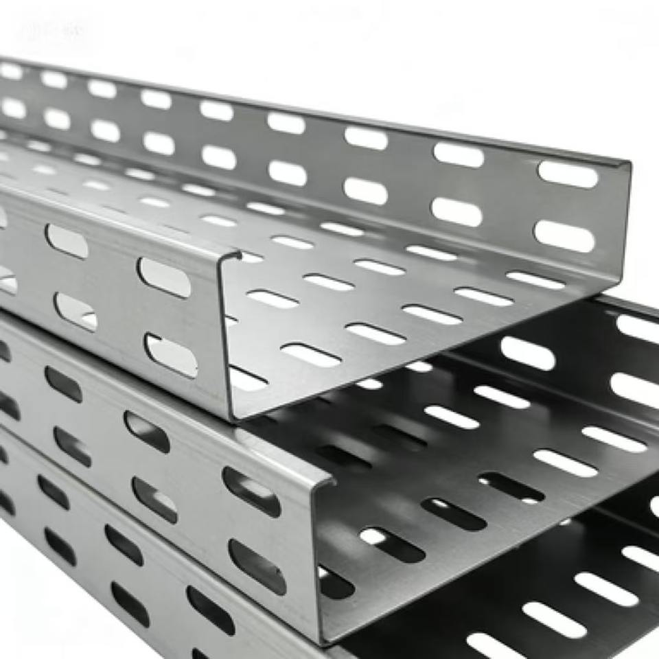 รางเคเบิลเหล็กชุบกัลวาไนซ์แบบจุ่มร้อนป้องกันการกัดกร่อน แบบเจาะรู ขนาดมาตรฐาน สำหรับจัดการสายเคเบิลในงานก่อสร้าง ได้รับการรับรองมาตรฐาน ISO/CE