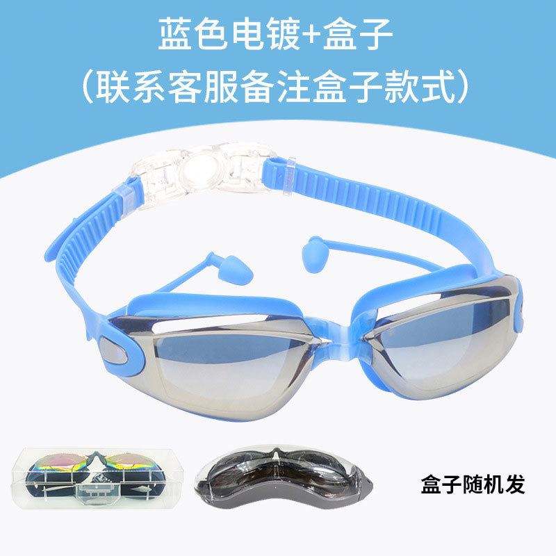 แว่นตาว่ายน้ำป้องกันการเกิดฝ้าสำหรับผู้ใหญ่แว่นตาสระว่ายน้ำป้องกันหมอกป้องกันรังสียูวีสำหรับผู้ชายผู้หญิงแว่นตาว่ายน้ำกันน้ำมีที่อุดหู