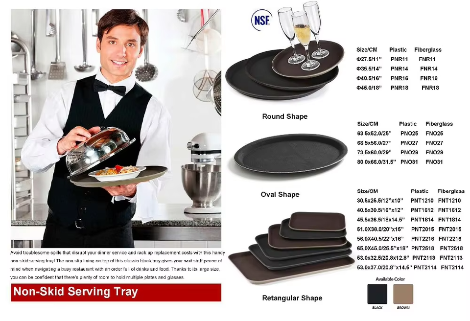 ถาดกลมสี่เหลี่ยมทรงรีทรงกลมป้องกันการลื่นสำหรับโรงแรมและร้านอาหาร