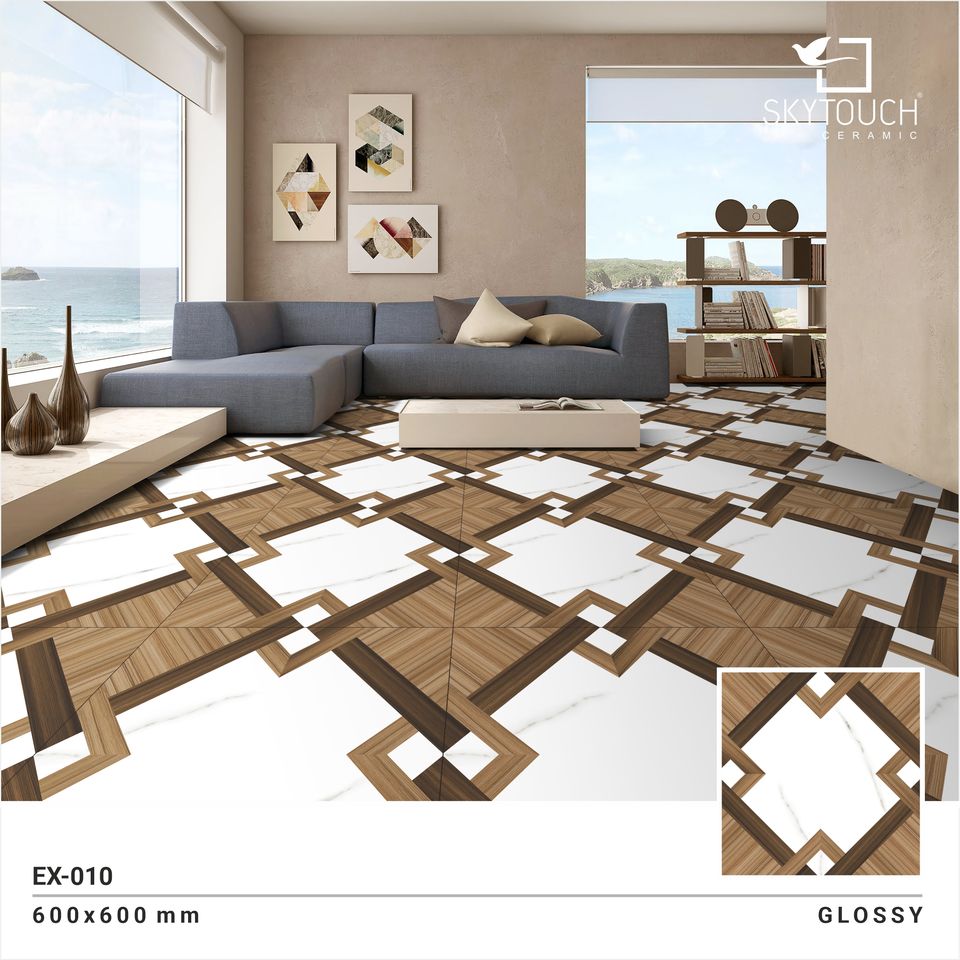 กระเบื้องพอร์ซเลนที่ทันสมัยกันลื่นกระเบื้องเคลือบแบบเต็มชั้นลายครามสีน้ำตาลขาว60x60แบบดั้งเดิม