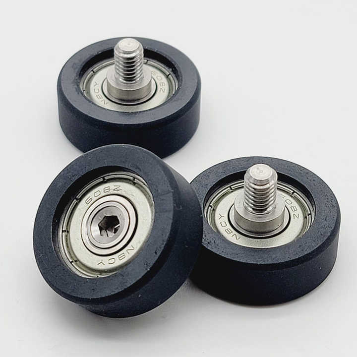 ลูกปืนโพลียูรีเทนป้องกันไฟฟ้าสถิตเหมาะสำหรับอุปกรณ์อัตโนมัติในโรงงานที่ปราศจากฝุ่นและทนต่อแรงกระแทก ลูกกลิ้งเคลือบยาง