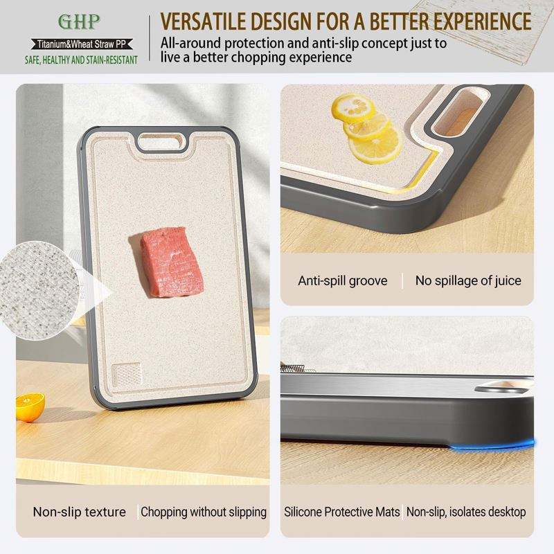 เขียงตัดสองด้านขนาดใหญ่ ทนทาน ป้องกันแบคทีเรีย ป้องกันเชื้อรา ทำจากโลหะ ฟางข้าวสาลี และไทเทเนียม