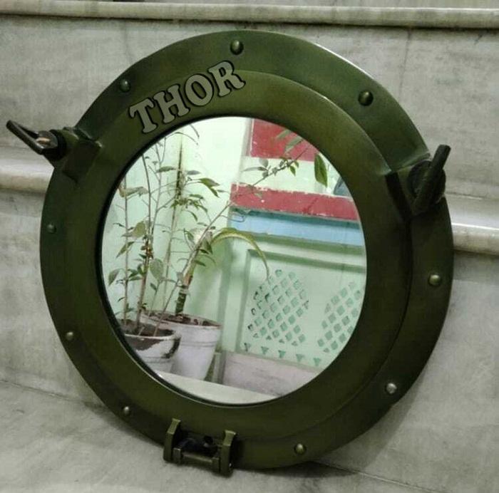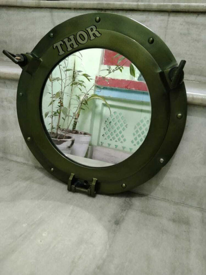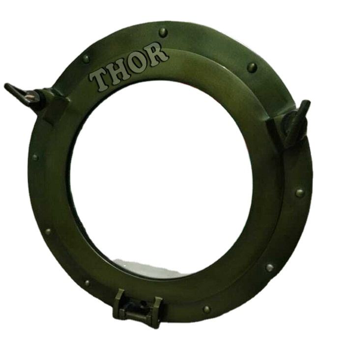 โบราณ11 "น้ำทะเล Alum กระจกห้องน้ำสีเขียวขัดเงาผนังด้านเดียวแขวนผนังกระจกหน้าต่าง Porthole