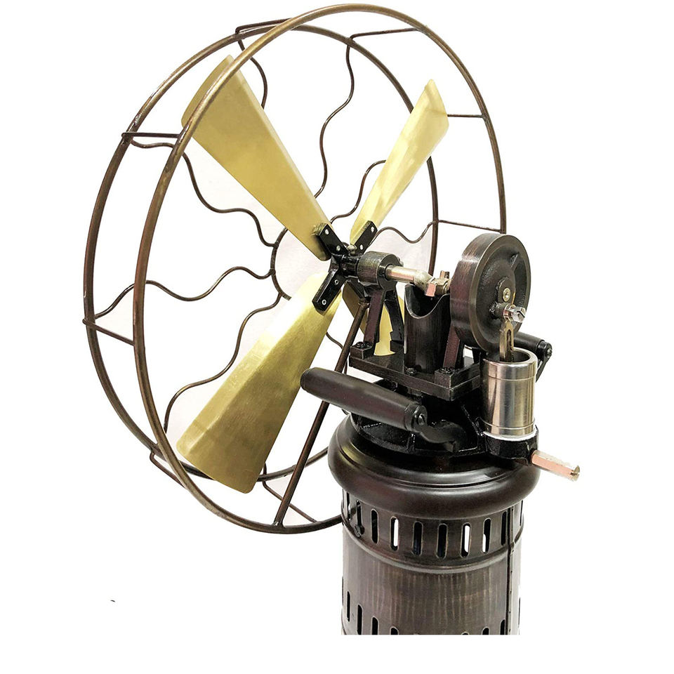 พัดลมตั้งโต๊ะสไตล์ไอน้ำแบบใบพัด15 "สไตล์อินเดียตะวันออกดีไซน์1945หายากและไม่เหมือนใครใช้ตกแต่งทำจากทองเหลืองและเหล็ก