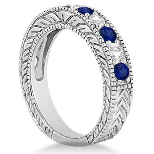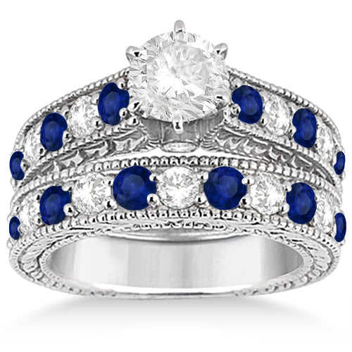 ชุดแหวนแต่งงานเพชรและไพลินโบราณ 2.87 กะรัต ฝังในแพลตตินัม ชุดเครื่องประดับชั้นดี