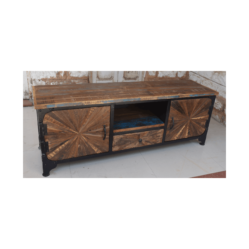 Iron Wooden 2 Door 1 Drawer Tv Cabinet
