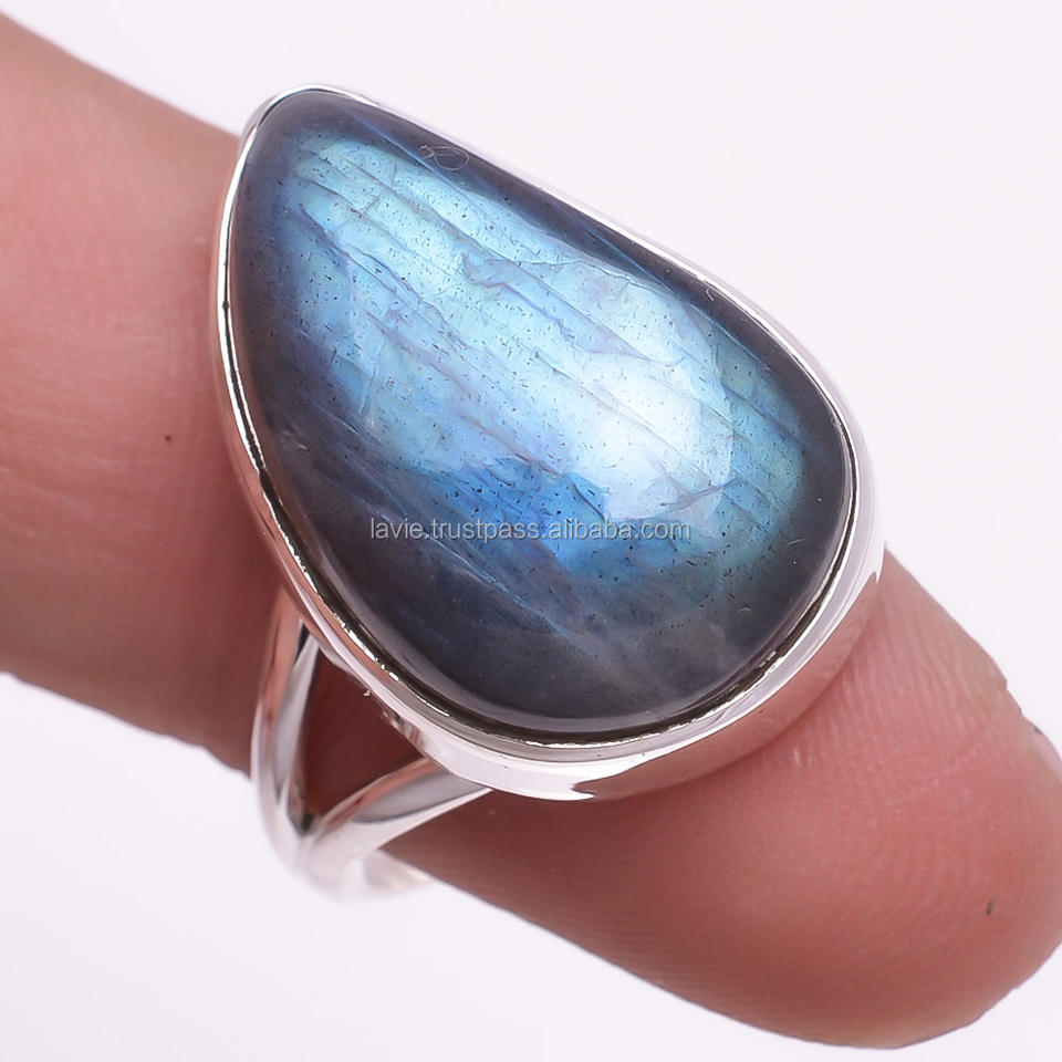 แหวนเงินแท้ 925 ประดับพลอยลาบราดอไรต์ทรงกรอบ สำหรับผู้หญิง สวมใส่ในโอกาสหมั้น แต่งงาน เครื่องประดับทำมือ