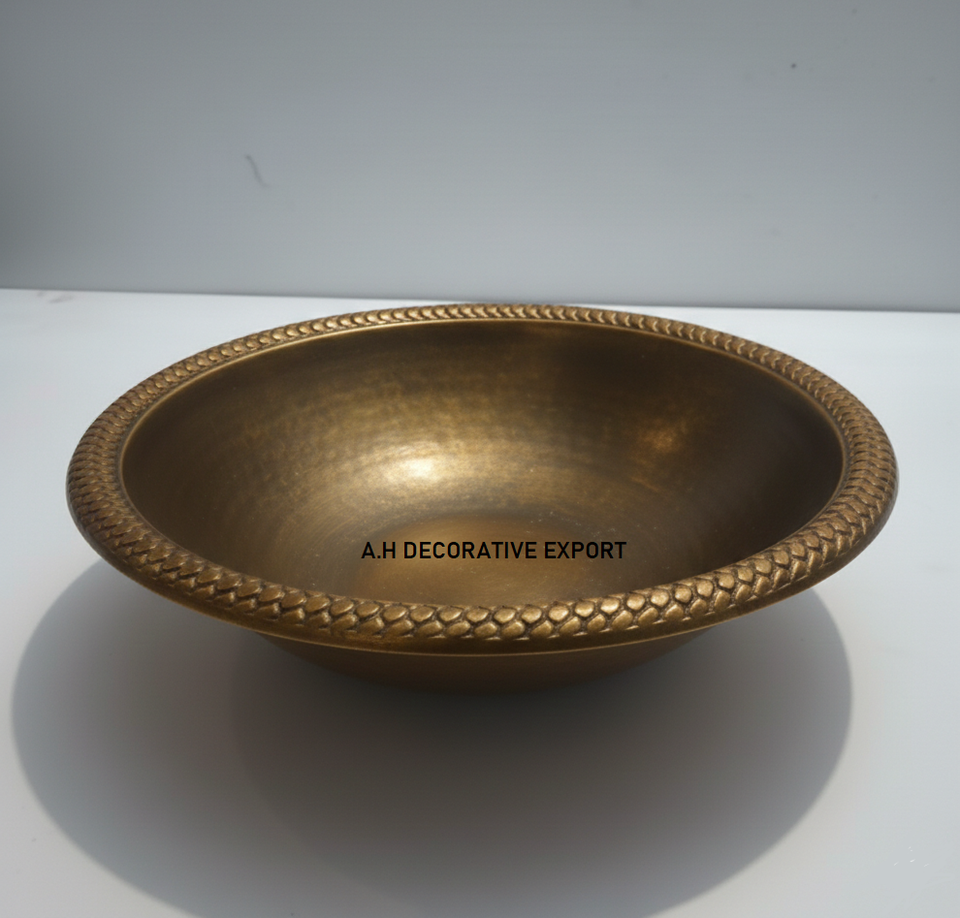 ชามโลหะตกแต่งสไตล์โบราณ ทำจากอะลูมิเนียมรักษ์โลก ขอบถักลายสวยงาม ปรับขนาดได้ ใช้เป็นของตกแต่งกลางโต๊ะสุดหรูสำหรับบ้านสมัยใหม่