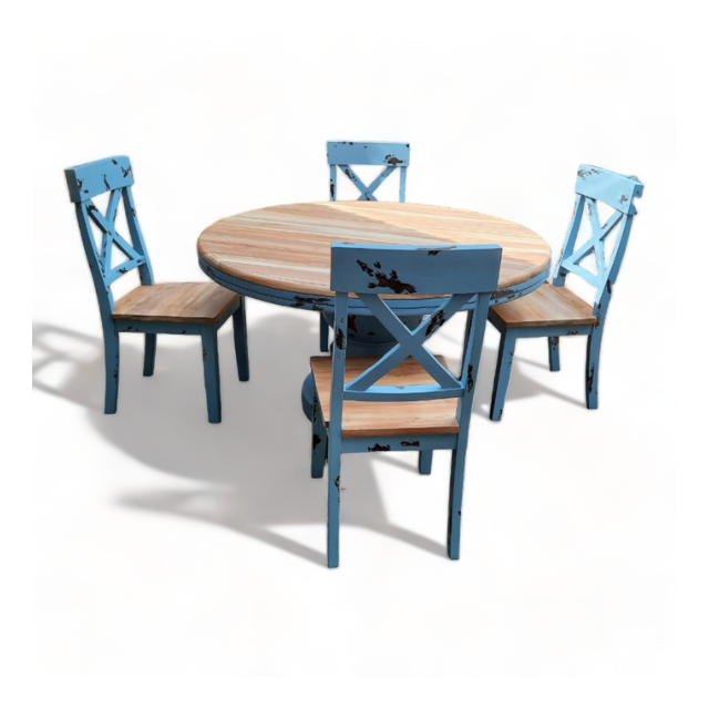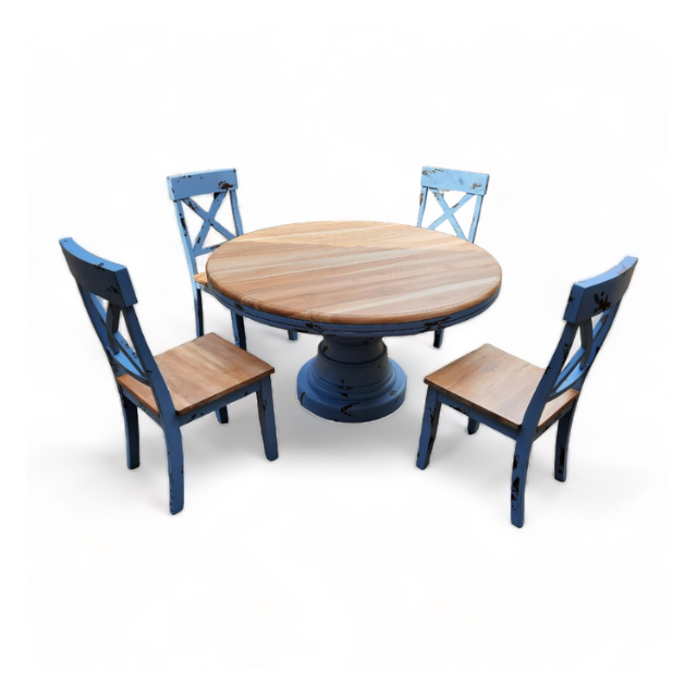 ชุดโต๊ะรับประทานอาหารสไตล์อเมริกันบ้านไร่โบราณ4โต๊ะไม้สักแข็งเก้าอี้ประสบการณ์การรับประทานอาหารที่สะดวกสบายร้านกาแฟ