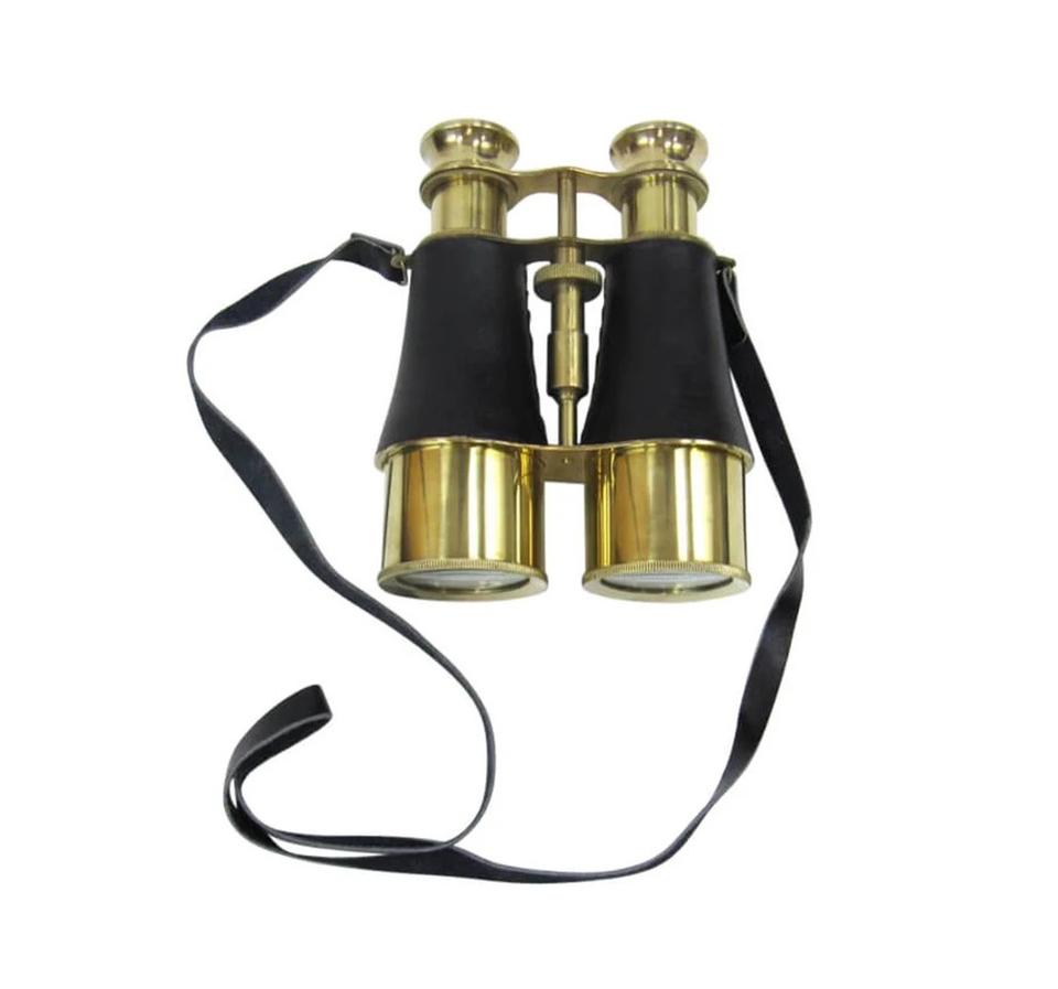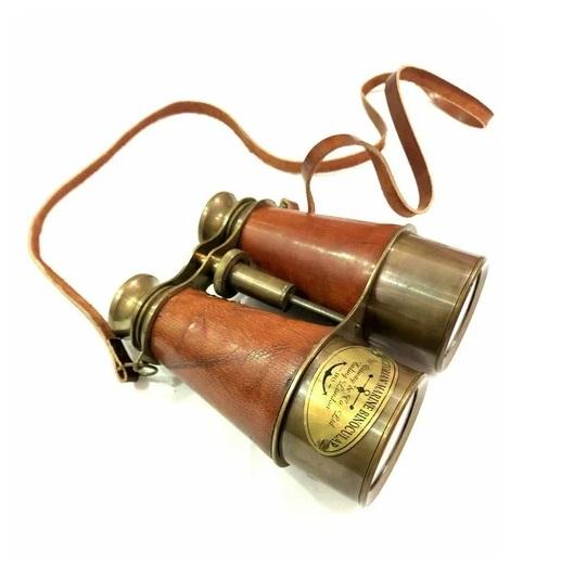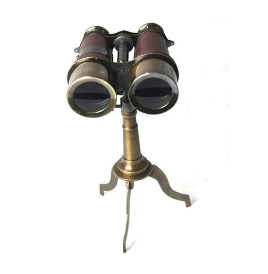 หนังกล้องส่องทางไกลแบบโบราณหุ้มด้วยกล้องส่องทางไกลทองเหลืองแบบสองตาสำหรับตกแต่งบ้านสำหรับผู้ใหญ่