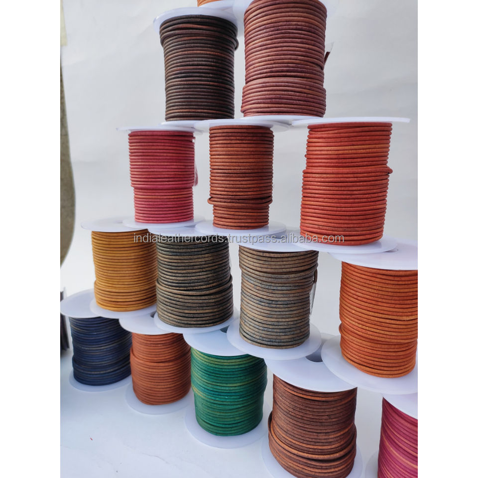เชือกหนังแท้สีดำโบราณ ขนาด 2 มม. แบบกลม ม้วน 100 เมตร สำหรับทำเครื่องประดับหนังวินเทจและงานประดิษฐ์เครื่องประดับที่เป็นเอกลักษณ์