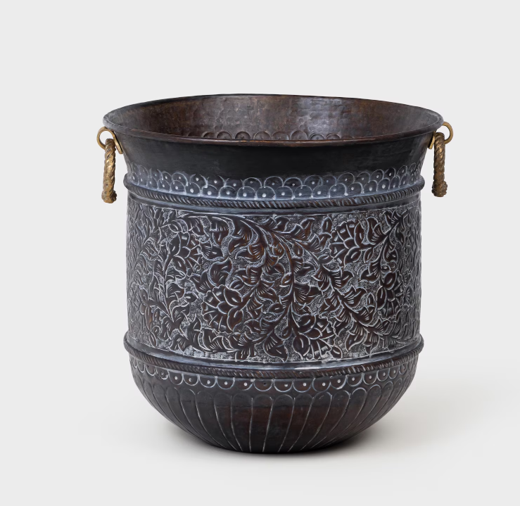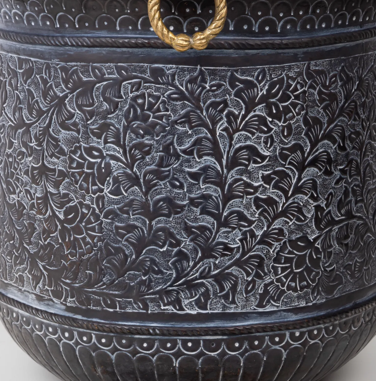 ผงเคลือบทองเหลืองทรงสูงสลักลายป่าดำโบราณสำหรับตกแต่งบ้านและสวนที่หรูหรา