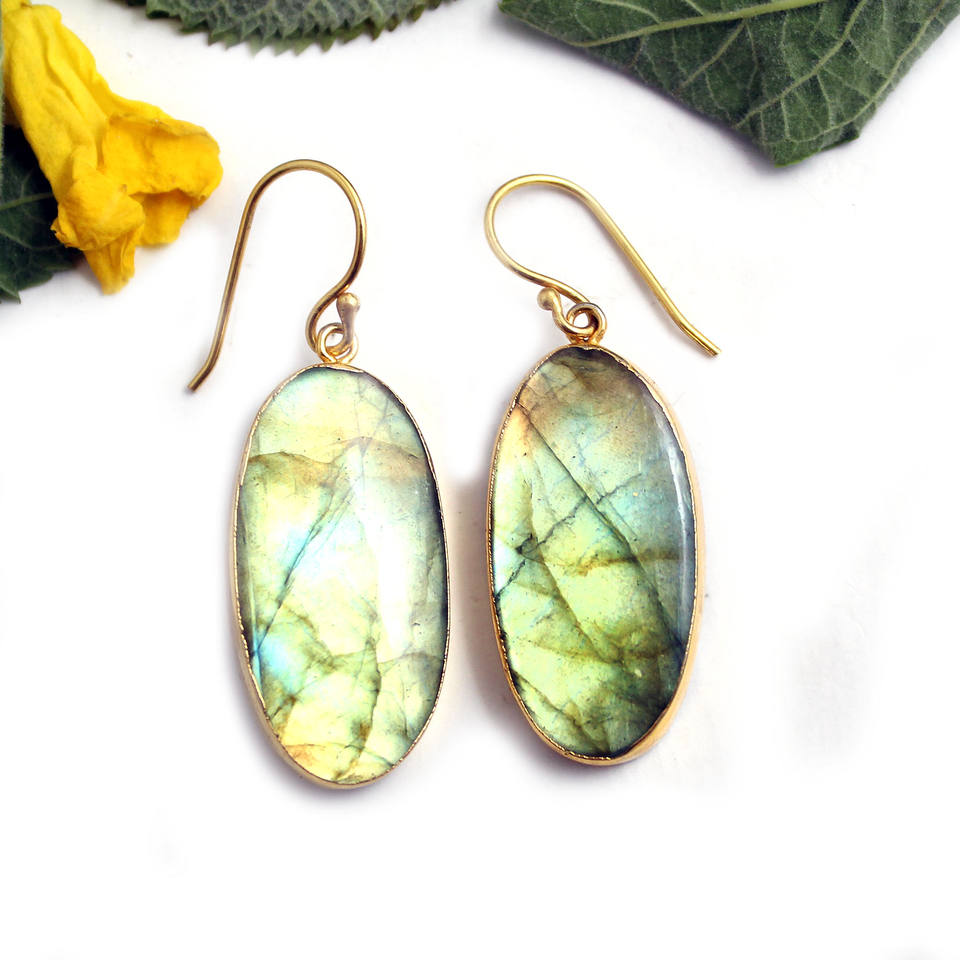 หินแลบราโดไรต์สีฟ้าโบราณ24K โกลด์อิเล็กโทรเพลทแฟนซีรูปทรงเรขาคณิตต่างหูห้อยเครื่องประดับสำหรับผู้หญิงขายส่งเป็นกลุ่ม